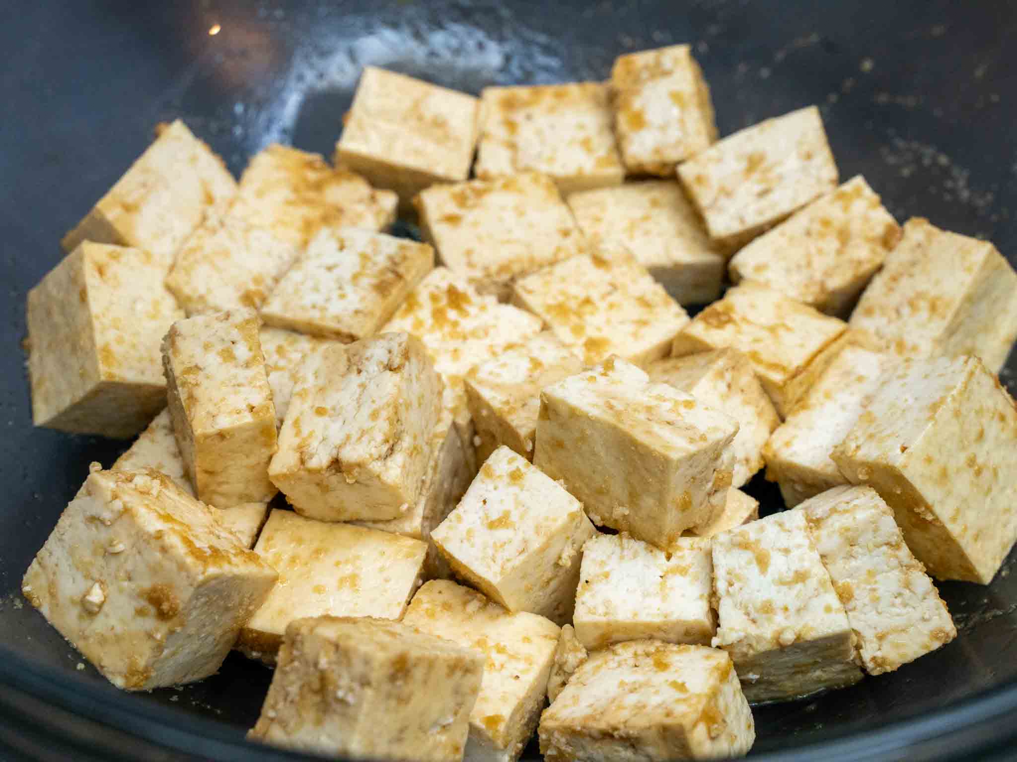 if you're using firm or medium tofu make sure to press the tofu block for about 30 minutes to remove extra water. -