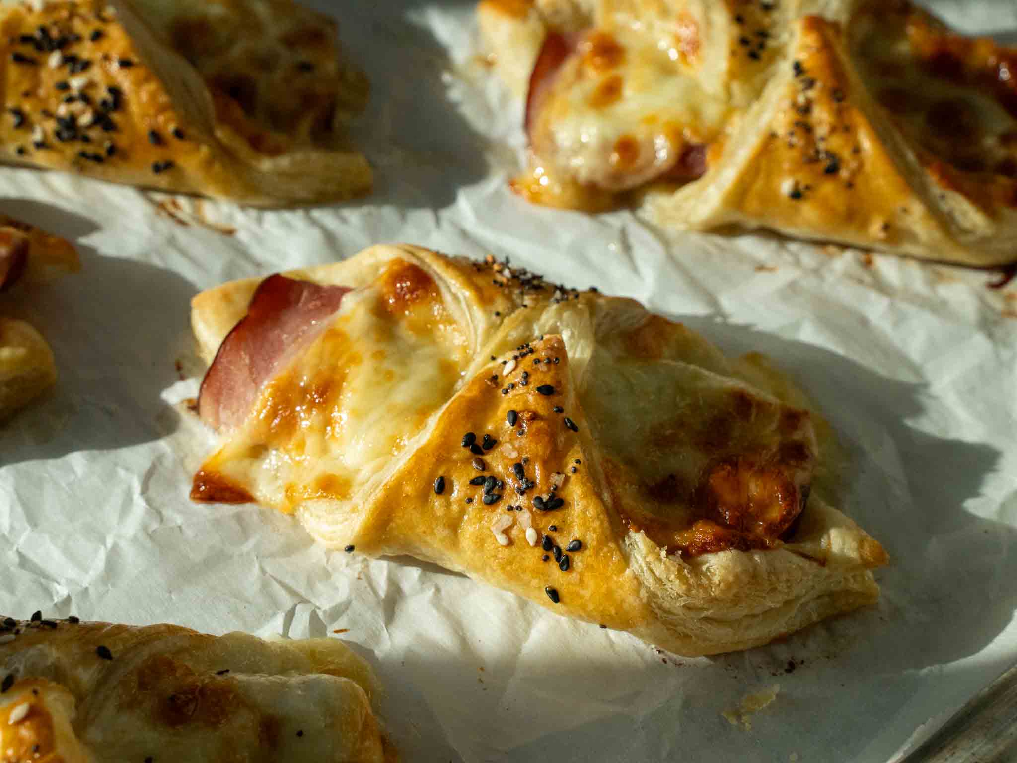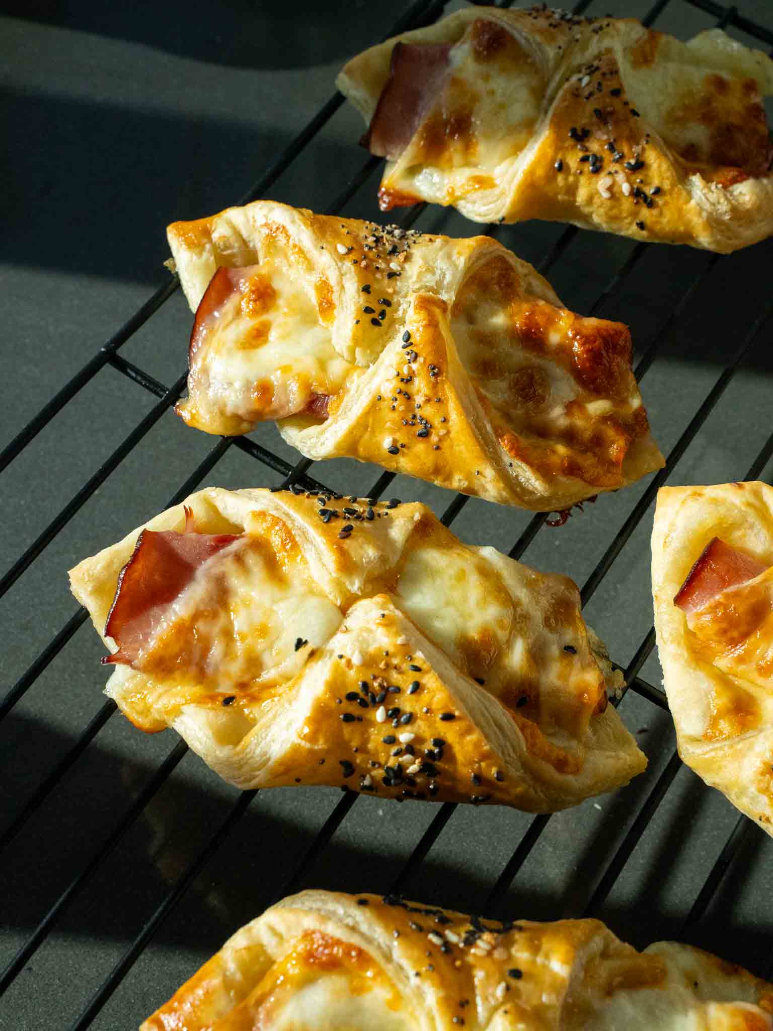 Flaky and Golden Ham and Cheese puff pastries made easy with store-bought puff pastry sheets.