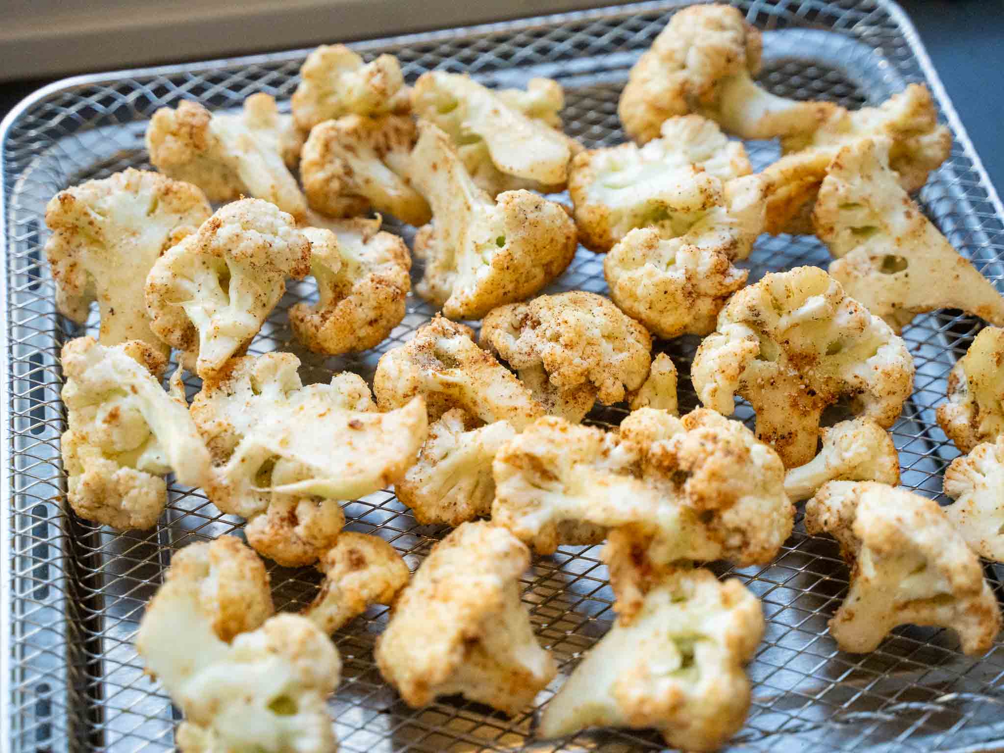 When cauliflower florets are wet, they don’t get crispy enough. Instead, they steam in the air fryer. To prevent this and to make them brown, make sure to dry them well.
